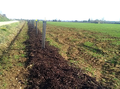 450 m de haies champêtres (mélange de chêne, cornouiller, fusain, érable, merisier, viorne,...) viennent d'être plantés en zone agricole sur ce territoire au coeur du GIC Nère-Louge.
