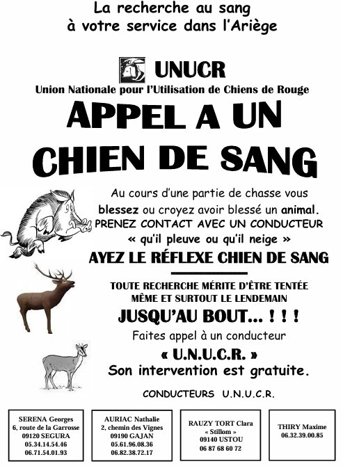 Les conducteurs de chiens de sang sont fédérés au sein d'une association nationale : l'UNUCR : Union Nationale pour l'Utilisation des Chiens de Rouge qui couvre l'ensemble du territoire.