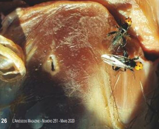 Vous trouverez ci-dessous l'article du mensuel l'Ariégeois magazine relatif à la redécouverte de la mouche à tête orange (Thyreophora Cynophila). Cette dernière était considérée comme disparue depuis 1836.