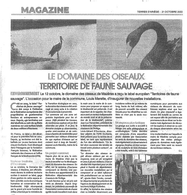 Retour aux actualités 25-10-2022 Label européen pour le domaine des oiseaux Partager l'actualité Facebook X (Twitter) LinkedIn pinterest mail
