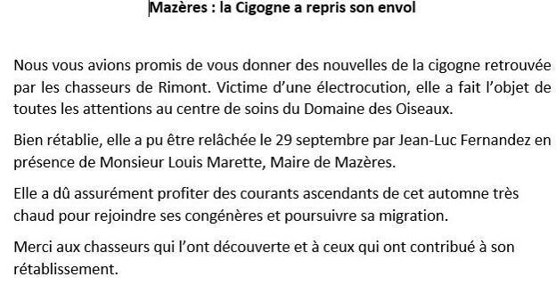 03-10-2023 MAZERES: Vidéo cigogne relâchée à MAZERES (clic sur image)