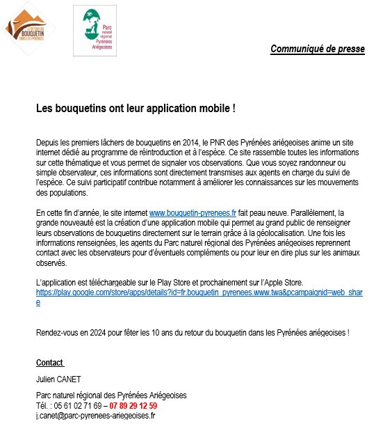 Retour aux actualités 21-12-2023 Les bouquetins ont leur application mobile Partager l'actualité Facebook X (Twitter) LinkedIn pinterest mail