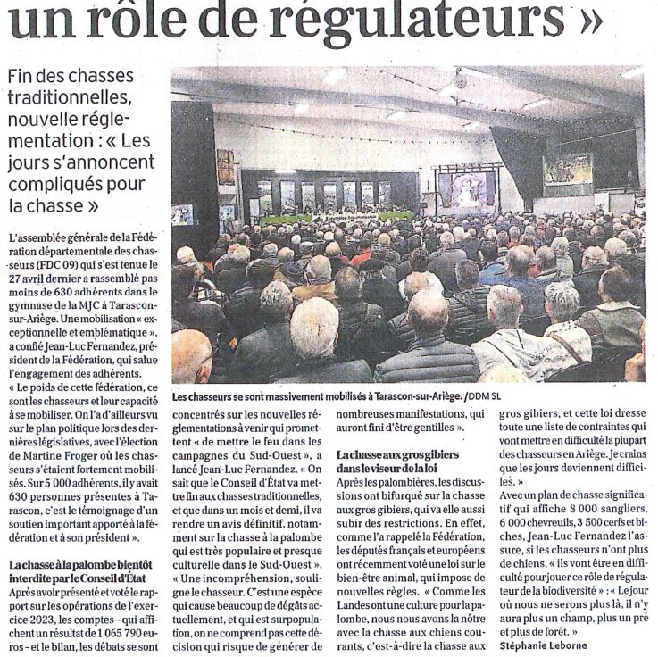 Cette belle Assemblée Générale a été marquée par la présence de très nombreuses personnalités du département et la qualité des interventions. En outre, cette édition 2024 a rassemblé plus de 600 chasseurs venus de toute l'Ariège.