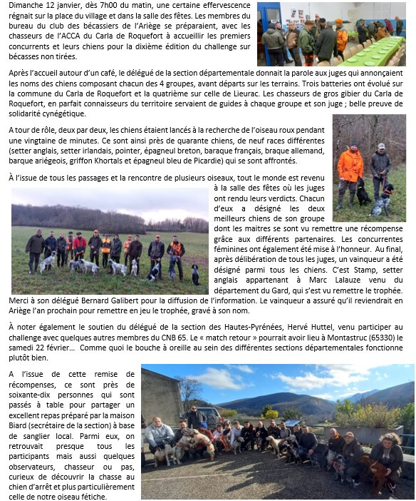 Retour aux actualités 28-01-2025 Challenge bécasse du club Ariège Partager l'actualité Facebook X (Twitter) LinkedIn pinterest mail