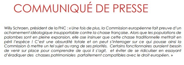 Retour aux actualités 13-02-2025 La chasse à la palombe attaquée par la C.E. Partager l'actualité Facebook X (Twitter) LinkedIn pinterest mail