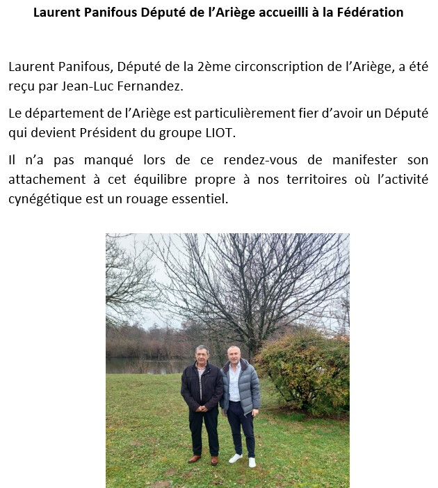 Retour aux actualités 27-02-2025 Le député et le sénateur en visite à la FDC 09 Partager l'actualité Facebook X (Twitter) LinkedIn pinterest mail