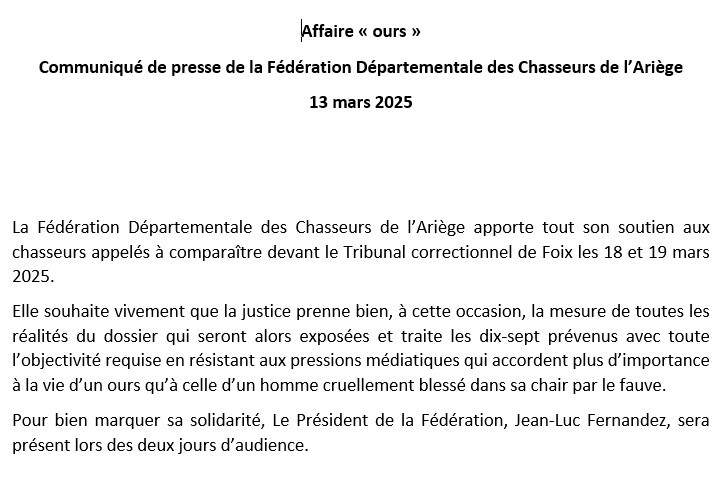 14-03-2025 Affaire ours : La FDC 09 en soutien