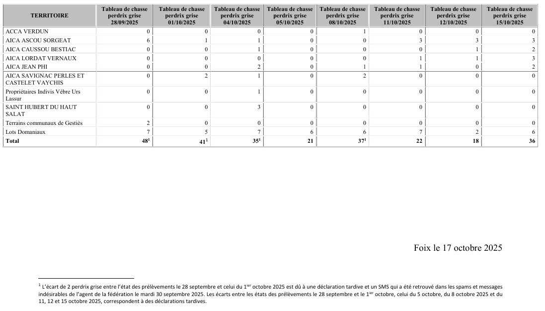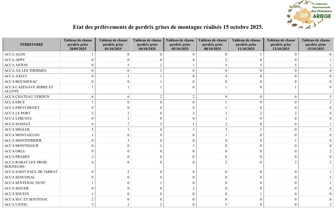 Retour aux actualités 17-10-2025 Prélèvements perdrix grises au 15 octobre 2025 Partager l'actualité Facebook X (Twitter) LinkedIn pinterest mail