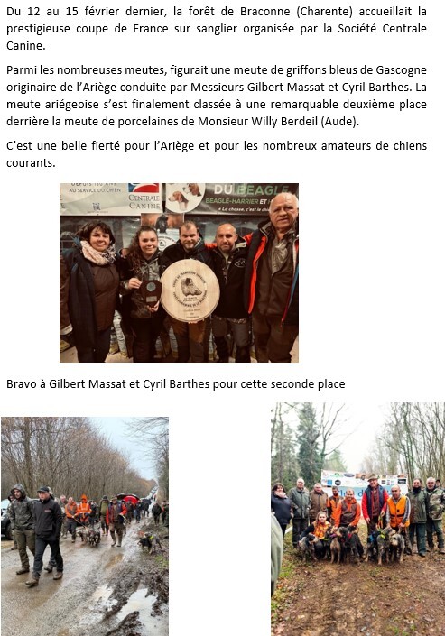 Retour aux actualités 12-03-2026 Coupe de France sur sanglier: meute ariégeoise à l'honneur Partager l'actualité Facebook X (Twitter) LinkedIn pinterest mail