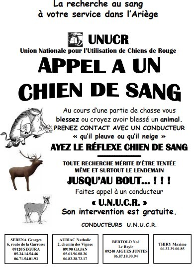 Les conducteurs de chiens de sang sont fédérés au sein d'une association nationale : l'UNUCR : Union Nationale pour l'Utilisation des Chiens de Rouge qui couvre l'ensemble du territoire.