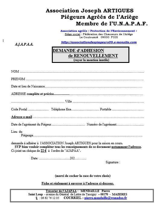 - Association Joseph Artigues des Piégeurs Agréés de l'Ariège