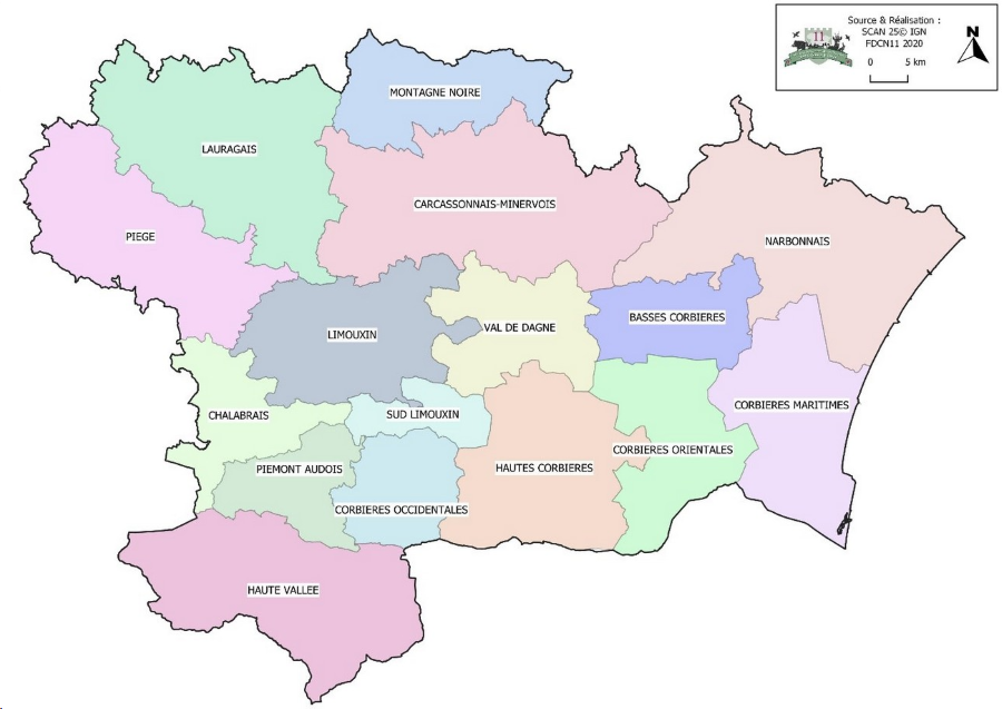 La grande diversité des espèces et des espaces Audois impose une gestion adaptée. Le département a été découpé en Unités de Gestion suivant le découpage biogéographique du département. Celles-ci auront la principale caractéristique de regrouper chacune un ensemble de territoires de chasse où des actions de gestion des populations de différentes espèces et de leurs habitats pourront s'organiser.