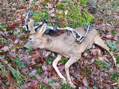 Enfin notre administrateur Thierry Capelle, grand défenseur de la chasse à l’arc nous fait parvenir ce beau cliché d’un beau brocard en velours prélevé à l’Arc. Là aussi, on retiendra la mise en scène du gibier prélevé autour de l’arc.