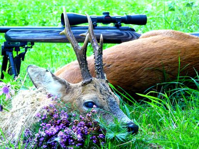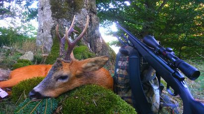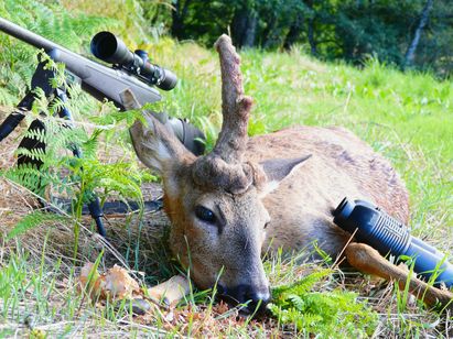 Voilà, 3 magnifiques brocards prélevés par Fabrice Ginesty à Ségur sur le Lévezou et au Viala du Tarn dans le sud Aveyron. Outre la qualité des animaux prélevés, avec des bois de 21 à 22 cm de long. On ne peut qu’apprécier le côté esthétique des photographies. C’est du grand art. On note un vrai travail de mise en valeur de l’animal prélevé, ce qui est particulièrement appréciable. Merci. On remarquera également la magnifique tête bizarde du chevreuil « licorne » encore en velours le 14 juillet, date de son prélèvement. C’est ce que l’on appelle un chevreuil à perruque. L’animal en perruque est en fait atteint d’une atrophie testiculaire qui entraîne une déficience permanente des hormones mâles. Cela explique qu’il soit toujours en velours en plein été. Les brocards à perruque dits « mitrés » ont les deux merrains qui se touchent pour ne former qu’une masse ressemblant à une mitre d’évêque. Là aussi une très belle photographie avec un vrai sens de l’esthétisme. Bravo encore pour la photo et pour le prélèvement. Les chevreuils à perruque sont inaptes à la reproduction.
