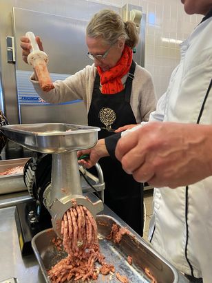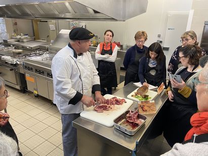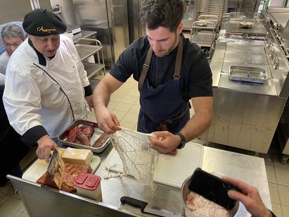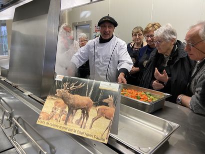 Grâce au soutien d’un boucher, les apprenants d’un jour ont tout d’abord commencé par désosser et découper des morceaux pour les réserver en fonction de leur utilisation future. Puis, tout au long de la matinée, le chef Henri Paulhe a décliné le cerf à toutes les sauces. En daube, à braiser, en terrine, en pavé ou bien encore en rôti Orloff. Les faisans quant à eux ont été traités en galantine.