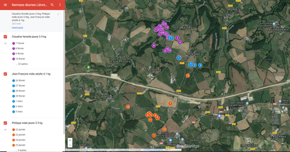 « Claudine » quant à elle se porte à merveille. Elle montre une attirance toute particulière pour les haies et les bois et n’occupe en journée que très rarement des milieux ouverts. Ceux qui le souhaitent peuvent suivre jour après jour, les chance et revers de nos lièvres aveyronnais à l’adresse suivante : https://www.google.com/maps/d/viewer?mid=15ZKYyCUTecbvI2IV8rC0bHA4Lg01wala&ll=44.29203870570214%2C2.471512109041214&z=15. N’hésitez pas à y aller et à y retourner encore et encore. Tous les jours des données nouvelles sont ajoutés.