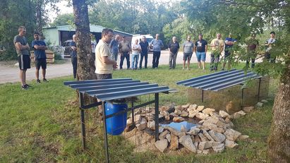 Maxime Gaubert a ensuite présenté un aménagement type. Ce dernier se compose d’un nourrisseur, d’une mare et d’une volière de prélâcher. Le tout sera agrémenté d’un petit tas de fumier et de lauzes plates posées à même le sol. L’objectif est clairement affiché il faut produire des insectes qui entrent majoritairement dans la composition du bol alimentaire des perdrix. « Avec ce projet, nous nous inscrivons dans le long terme, nous travaillons sur l’aménagement du territoire, en partenariat avec les agriculteurs nous allons lâcher plusieurs centaines d’oiseaux pendant 3 ans et pendant 3 ans la perdrix ne sera pas chassée » explique Jean-Pierre Authier.