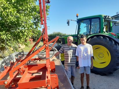 L’exploitation est située à Garillac sur la commune de Clairvaux. Constituée d’un troupeau d’une quarantaine de vaches Aubrac en estive et des parcelles de foin et de céréales à paille. La récolte du foin se fait sur une vingtaine d’hectares en plusieurs coupes et c’est sur ces parcelles que le tandem a utilisé la barre d’effarouchement. Monsieur Redoulez interrogé sur l’utilisation du dispositif explique que le matériel est très simple d’utilisation, efficace et peu contraignant. Toutefois il rajoute : « Il serait possible d’améliorer le système en rajoutant des robinets hydrauliques ou une chandelle réglable pour ajuster le niveau du peigne qui n’est pas régulier, il pique un peu trop en bout de flèche ».