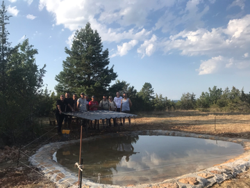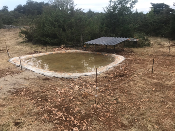 Aussi, fort de ce constat, les chasseurs de Concoures ont entrepris de creuser une mare sur le causse Comtal. A cœur vaillant, rien d’impossible et avec le Président Kévin Douls à la baguette, les chasseurs du causse ont entrepris de creuser et d’étanchéifier une mare d’une quinzaine de m². En amont, ils ont minutieusement choisi le lieu d’implantation en fonction de la possibilité de recruter de l’eau de ruissellement et également en fonction de son éloignement des autres mares existantes. Puis le bénévolat et la volonté de bien faire ont fait le reste. Il aura tout de même fallu une grosse journée de travail pour un rendu et une intégration parfaite.