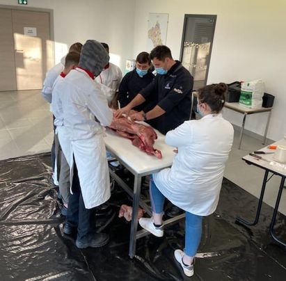 Appliqués et minutieux les élèves de la chambre des métiers ont alors entrepris de transformer les sangliers en tournedos, en paupiettes et en rôtis.