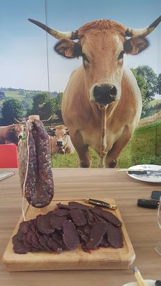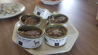 Dans cette recherche du goût, le savoir-faire est roi. Que ce soit pour proposer des produits traditionnels comme les pâtés, les pâtés de tête, les terrines. Ou pour s’aventurer sur des terrains plus novateurs comme la saucisse sèche de cerf (un délice) ou de la viande de cerf séchée ou bien encore des saucissons de sangliers.