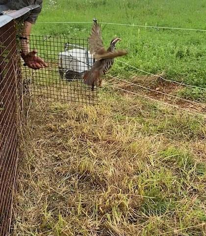 Régulièrement, ces dernières semaines, des oiseaux sont lâchés après avoir stationné plusieurs jours dans des volières de prélâcher. « C’est une phase importante, nous libérons progressivement des oiseaux. Ceux qui sont libérés restent en périphérie des volières en quelque sorte sous le rappel de ceux qui restent, là, des points d’eau et des agrainoirs leur donnent des raisons supplémentaires de s’approprier le secteur » explique Martial Lavastrou en charge du projet à la Fédération.