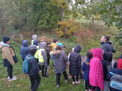 Dans le cadre du programme d’animations « Mon école, mon cours d’eau » du SMBV2A, la Fédération Départementale des Chasseurs de l’Aveyron a accompagné une sortie nature autour de la zone humide de Nostre Segne à destination des élèves de CM1 de l’école des Genêts d’Onet-le-Château.