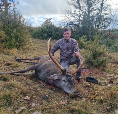 C’est bien connu, la valeur n’attend pas le nombre des années. À La couvertoirade, Adrian n’a pas tremblé et su tirer juste quand ce magnifique grand cerf est passé au poste. Les amateurs du cerf vont tout de suite voir là un animal qui ravale.