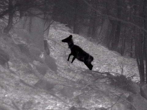 Une fois le collier posé, les techniciens ont également marqué la biche avec deux boucles auriculaires rouges. Ils l’ont baptisée « Neige ». Une nouvelle injection pour la réveiller et lentement « Neige » a fait ses premiers pas. Au début, cela a été quelque peu compliqué, comme un boxeur qui essaye de se remettre d’un K.O. Neige titube, puis elle tombe, se relève et tombe à nouveau pour enfin repartir toute chancelante et disparaître dans la nuit.