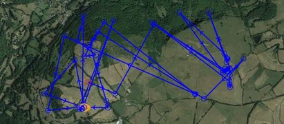 D’une manière générale l’écart entre le premier et le dernier point de chaque journée est de 1 à 2 km. De fait, notre biche reste majoritairement cantonnée dans un territoire plutôt restreint d’un peu plus de 200 ha. Fait intéressant, elle se rapproche souvent des habitations. Ce n’est pas la première fois que ce type de comportement est constaté. Souvent, il est avancé l'hypothèse de la réduction du risque qui consiste à se rapprocher d’endroits où l’on se sent en sécurité face à un prédateur à moins que la cause soit une source de nourriture particulièrement attirante (foin donné au sol, pierre à sel, reliquats de pommes dans un verger).