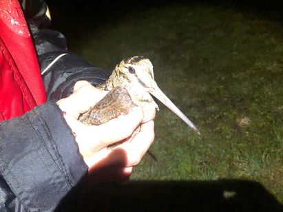 Attraper une bécasse pour la baguer n’est pas chose aisée. Il faut l’aveugler avec un phare puissant et à l’aide d’une longue perche déposer un filet pour lui interdire toute fuite. Jean Luc Reynes a réalisé l’exploit d’attraper deux bécasses d’un seul coup. Un pairon de bécasse. La chose est suffisamment rare pour être soulignée.