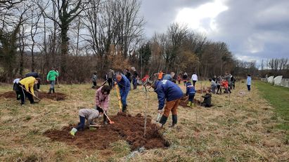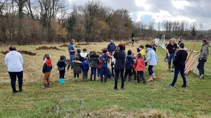 Au programme, création d’un verger et installation de nichoirs. Le moins que l’on puisse dire, c’est que les enfants n’ont pas ménagé leur peine. Armés de pelles ils ont plantés pas moins de 20 arbres fruitiers. Des pommiers en majorité, mais aussi quelques poiriers et des pêchers. Tous des variétés anciennes et locales.