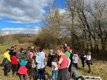 Il régnait une effervescence qui faisait plaisir à voir aux abords du terrain de foot de Salles-Courbatiès. Et ce n’était pas pour voir un match. Non, l’occasion était tout autre. En effet, la Municipalité de Salles-Courbatiès, la Fédération des Chasseurs de l’Aveyron et le Syndicat mixte Célé Lot-Médian ont décidé avec les enfants de l’école de créer un écolieu.