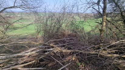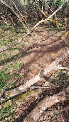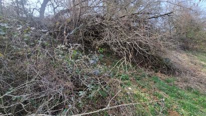 | La 4ième remise est en quelque sorte une création humaine, des branchages abandonnés dans un talus ont protégé ronces et chèvrefeuille qui ont on colonisé les lieux et forment désormais un auvent de pied de talus fort acceptable. |