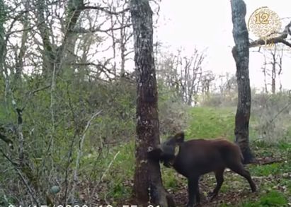 Aussi, voici donc Notre cher Nestor en image, tout tranquille bien à son affaire en train de se frotter contre un tronc ici, de glaner de quoi manger là. Un immense merci à Aurélien pour ces images.