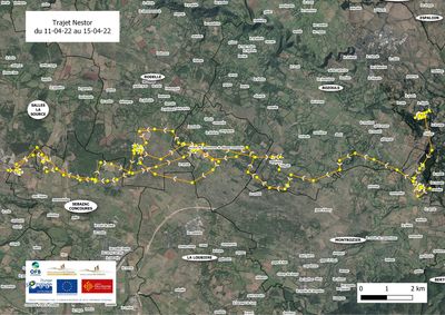 Nestor est en jambes. Notre sanglier équipé continue son exploration du territoire. Ce goût nouveau pour le voyage explique que malgré les pièges photo que nous avons disposés, nous ne savons toujours pas si Nestor a retrouvé sa compagnie. Il faut d'ire qu'il nous a bien surpris en mettant le cap à l’est. Lui qui était plutôt casanier fait désormais montre d’une débauche d’énergie. La recherche de ses semblables justifie peut-être son goût nouveau pour l’aventure. À moins que ce ne soit l’éveil des sens et que notre jeune mâle se sente prêt pour découvrir les joies de la bagatelle.