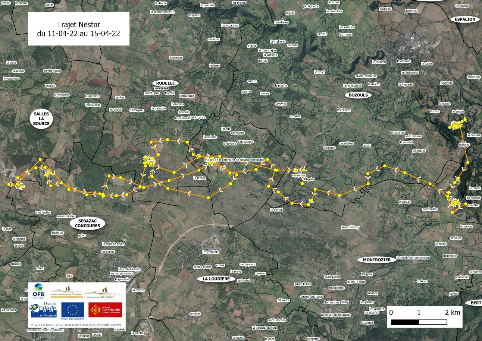 Sans mésestimer l’odorat de notre sanglier on peut aussi imaginer qu’il connaît les lieux, du moins qu’il en a le souvenir. Depuis le Ségala, sur la commune de Bozouls en passant non loin du parc de la Gachoune sur la commune de Rodelle pour rallier le Tindoul de la Vayssière sur Sébazac-Concourès et aller enfin se reposer dans fourrés de prunellier tout contre la carrière de Salles-La-Source notre sanglier a parcouru plus de 25 km.
