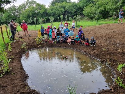 Après une présentation en salle de la mare et de ses habitants par les chasseurs de Montézic, les écoliers ont pris la direction de l’écolieu du pic du Castel. Là, les enfants sont venus prêter main-forte aux chasseurs de Montézic pour planter des plantes de berges tout autour de la mare.
