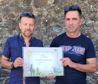Aussi, malgré la chaleur accablante, ils étaient une cinquantaine de personnes venues féliciter Frédéric pour cette récompense largement méritée. Dans son discours de remerciement, Frédéric Serre n'a pas manqué de souligner l'importance d'intégrer plus encore et mieux encore les jeunes chasseurs dans les équipes de chasse. Félicitations M. Serre.