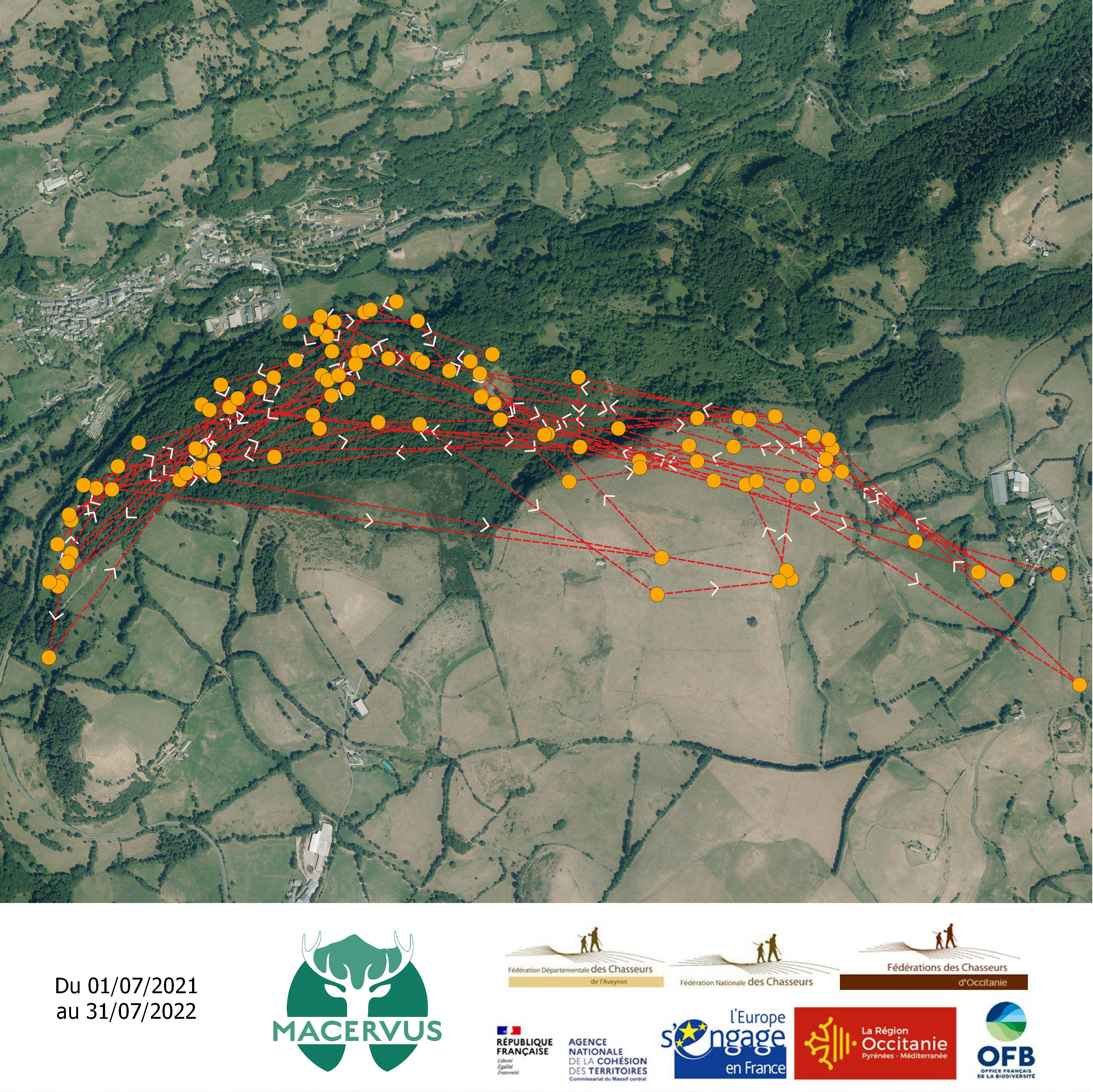 Elle a tout de même fait quelques incursions sur le plateau. Elle va toujours sur les Enfrux, mais avec une fréquence nettement moindre, les Crémailles ont eu sa préférence. Fait nouveau, une nuit elle a poussé jusqu’au Mas Nouvel. La chaleur n’a pas ralenti ses déplacements, elle ne les a pas augmentés non plus. On reste sur une moyenne mensuelle de 1500 m par jour.