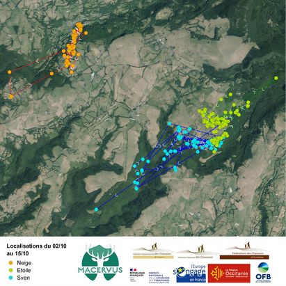 Sven lui à pas mal bougé, tantôt en rive droite, tantôt en rive gauche du ruisseau des Mousseaux, tantôt dans le bois de Mas Maury, tantôt dans le bois des Fouillous, tantôt dans le bois du Serre. Il est descendu jusqu’à la Pourquairie. À partir de là, nous ménageons le suspens pour la prochaine publication, mais allez savoir quelle mouche l’a piqué, toujours est-il que Sven a repris son bâton de pèlerin et il s'est remit à tailler la route… Vous verrez, ce n’est plus un cerf satellite, mais un aventurier… à suivre.