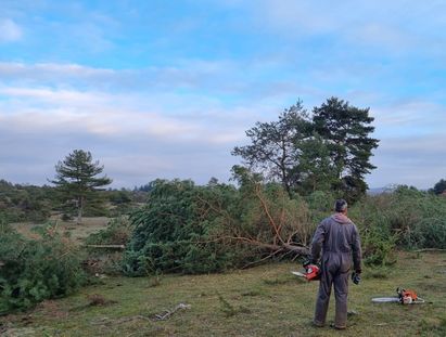 Dans le cadre de la gestion de l’Espace Naturel Sensible de la réserve de chasse du causse Comtal, les techniciens de la Fédération départementale des Chasseurs de l’Aveyron ont dû jouer de la tronçonneuse et couper plus de 200 pins sylvestres.