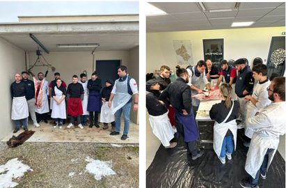 02-02-2023 Les apprentis bouchers travaillent de la viande de gibier