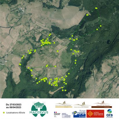 Notre biche équipée tourne en rond. Difficile de faire un cercle plus parfait. Étoile tourne autour du puech de la Bosse. Toutefois, le cercle n’étant pas au service du centre, on retiendra qu’ici, l’effet lisière joue à plein. Tantôt dans les bois, tantôt en bordure. Très rarement au centre.