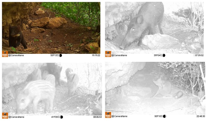 À la Fédération depuis que nous avons équipé des cerfs, des sangliers et des lièvres de colliers émetteurs, plus rien ne nous étonne. Souvenez-vous du sanglier « Nestor » qui se réfugiait par temps de pluie dans des grottes, du lièvre « Philippe » qui se glissait à l’abri dans un hangar agricole par mauvais temps. Du coup, les techniciens de la Fédération ont disposé un piège photo à l’entrée d’une grotte. On vous laisse apprécier en image ceux qui sont venus s’y réfugier…