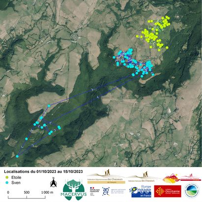 Il faut dire que pendant qu’Étoile est restée au puech de la Bosse, dans les genêts et les fougères aigle, Sven est descendu dans les bois des Fouillous jusqu’à la Pourquairie. Puis il remonté jusqu’à la Bosse où il est resté à bramer tel un maître de place.