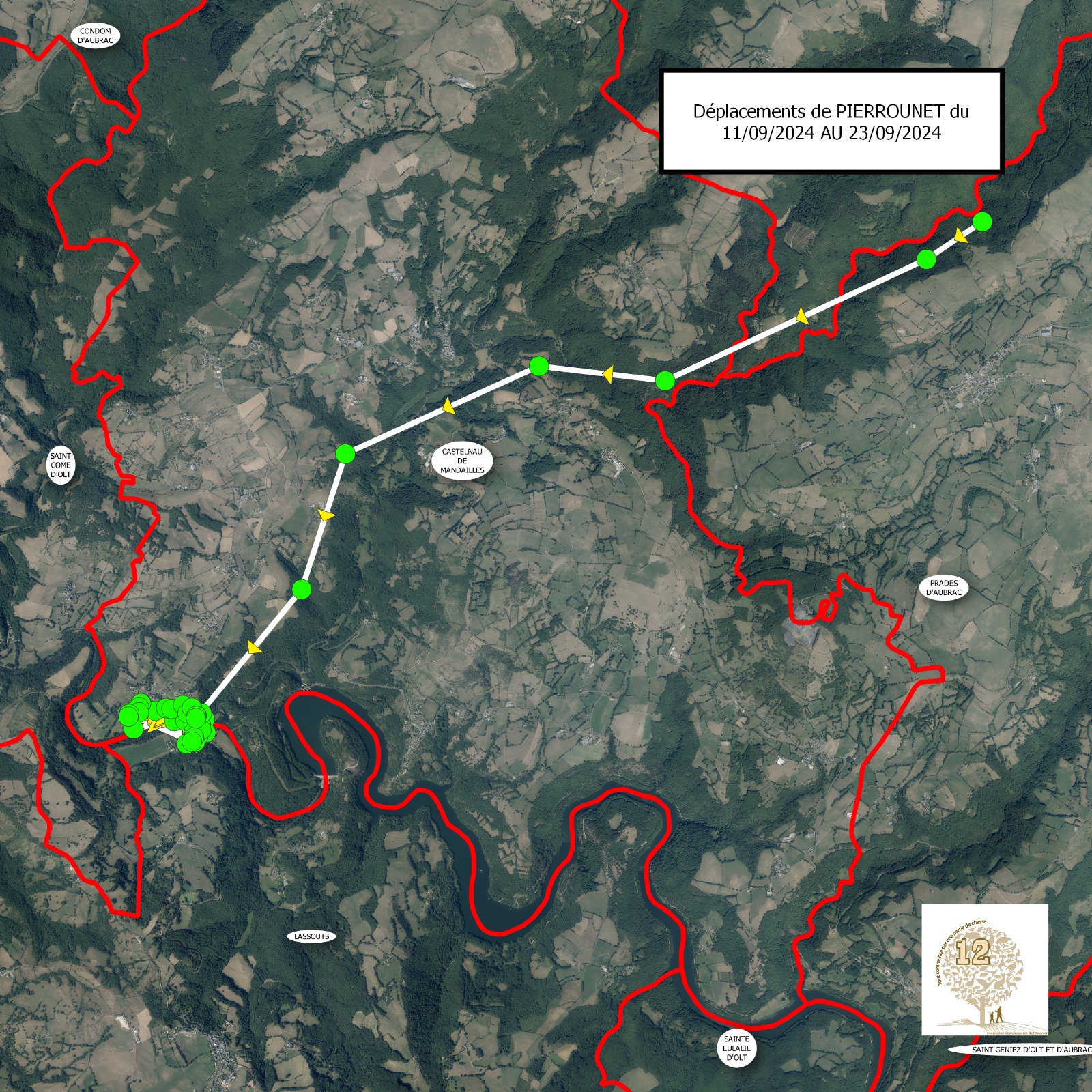 Cela n'a pas traîné. À peine arrivé en terre aveyronnaise, Pierrounet a pris la direction de la vallée du Lot. Il est retourné directement sur la commune de Lassouts. Commune sur laquelle nous l'avions équipé du collier GPS il y a moins d'un an.