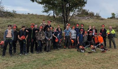 Dans le cadre de la gestion de l'ENS de la réserve de chasse du causse Comtal, la Fédération Départementale des Chasseurs de l'Aveyron poursuit son travail en faveur de la restauration des pelouses sèches avec l'aide du Conseil Départemental de l'Aveyron. Cette année encore, les élèves de la maison familiale de Saint Sernin sur Rance sont venus prêter main-forte aux chasseurs pour couper et évacuer des genévriers devenus trop gourmands. Le moins que l'on puisse dire c'est que les élèves ont été particulièrement efficace et que leur passage aura fait du bien à la flore des pelouses.