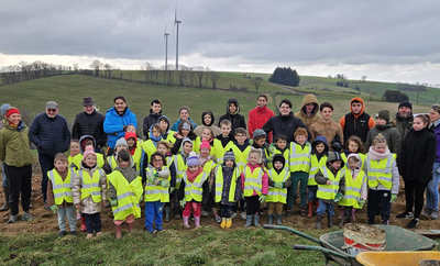 C'était un engagement fort de la société Q-Energy. Aider la biodiversité en plantant une haie sur Broquies. Pour ce faire Q-Energy avait fait appel aux chasseurs et à l'association « Arbres Haies et Paysage d'Aveyron ». Cependant, il importait également que la plantation, outre son intérêt écologique, ait une valeur pédagogique. C'est pourquoi Q-Energy avait demandé à la Fédération Départementale des Chasseurs d'associer les enfants de l'école et les étudiants de Valrance. Aussi, histoire de planter en pleine conscience, Adrian Valette, technicien à la Fédération des Chasseurs de l'Aveyron, a d'abord réalisé une présentation des fonctions et des valeurs des haies. Puis, il ce fut le temps de passer aux travaux pratiques et de mettre les mains dans la terre. Qu'à cela ne tienne, les BTS et les écoliers n'ont pas rechigné à la tâche. Les chasseurs de Broquies sont également venus prêter main-forte et tout ce beau monde à planté plus de 270 m de haies. Félicitations.