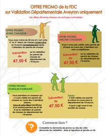 Tout chasseur âgé de moins de 20 ans qui demande la validation annuelle du permis de chasser pour la deuxième année consécutive dans l'Aveyron, bénéficie d'une remise de 47,50 € du prix du timbre fédéral sur sa validation du permis de chasser.